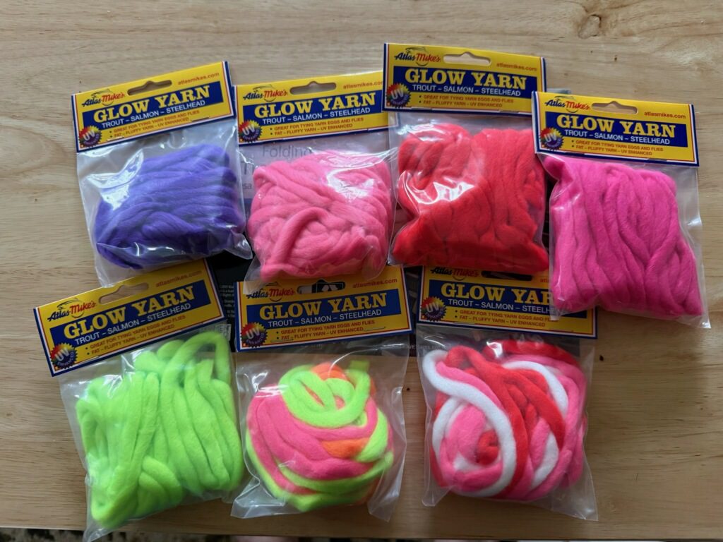 Another key advantage is scent retention. When the bite gets tough, experimenting with different scents can make a big difference, and the yarn helps hold that scent much better than eggs alone. For steelhead and browns, I prefer using Fire Gel in trout, shrimp, steelhead, and anise scents.