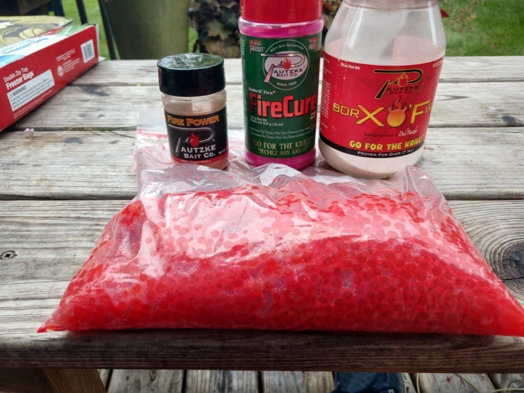 One thing I do that many Great Lakes anglers don’t is add scent to my cure. Krill is a strong bite stimulant. Therefore, I use it heavily in my cures and last year I’m positive it increased my catch rates. Keep in mind that Fire Power is pure krill powder. I add a dusting of Fire Power on my eggs and give the bag a good shake to make sure the powder gets in the eggs.