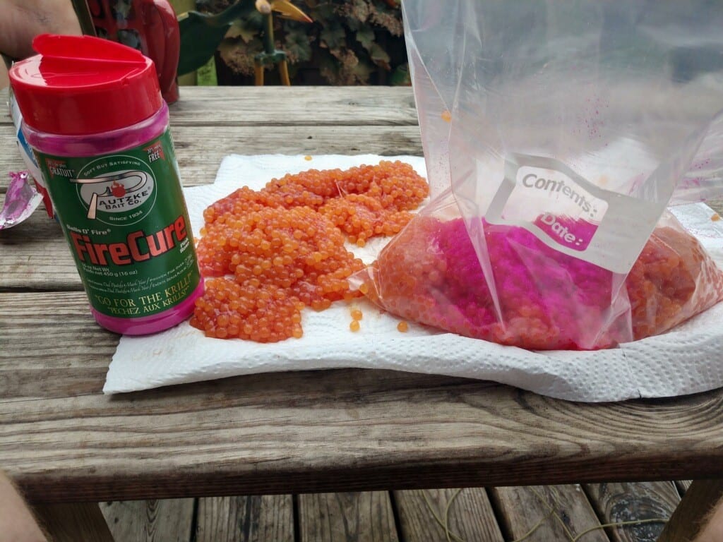 Tougher than curing eggs is catching a female salmon (males don’t have skein) so you have eggs to cure. After that the process is fairly simple. While I’ve fine-tuned my curing process over the last few years I’ve basically used the same products to cure skein. I use a few different cure recipes during the season. This is one of my favorites. Follow the steps below and you can have good eggs, too.